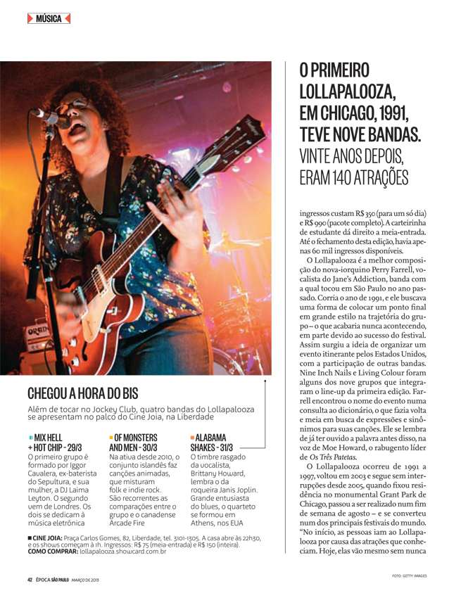 Época SÃO PAULO | COLABORAÇÃO: O Lollapalooza veio para ficar 10 de março de 20132 de agosto de 2016 / Raphael Martins * Publicado na edição 58 (Março) da Revista Época SÃO PAULO – Editora Globo Compartilhe isso: Compartilhar no X(abre em nova janela) 18+ Compartilhar no Facebook(abre em nova janela) Facebook Curtir Carregando... Relacionado