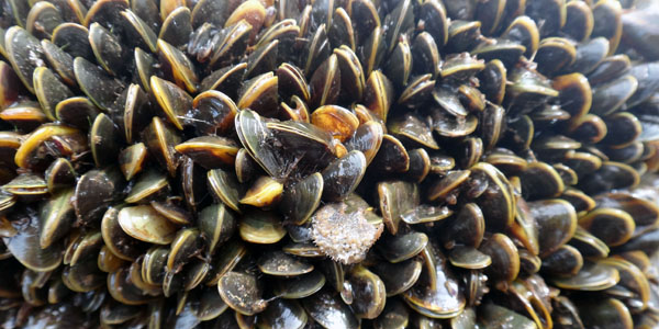 Uma colônia de mexilhão dourado pode crescer, em um ano, de 5 para 150.000 unidades por metro quadrado (Foto: Marcela Uliano / Divulgação)