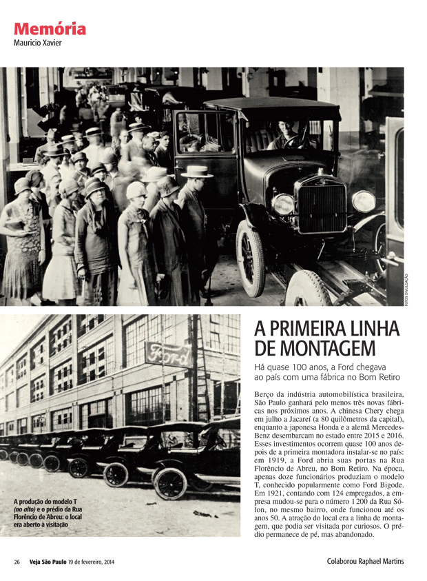 Na época, apenas doze funcionários produziam o modelo T, conhecido popularmente como Ford Bigode. Em 1921, contando com 124 empregados, a empresa mudou-se para o número 1 200 da Rua Sólon, no mesmo bairro, onde funcionou até os anos 50. A atração do local era a linha de montagem, que podia ser visitada por curiosos. O prédio permanece de pé, mas abandonado.